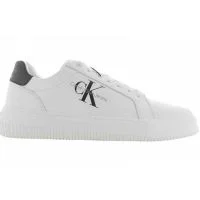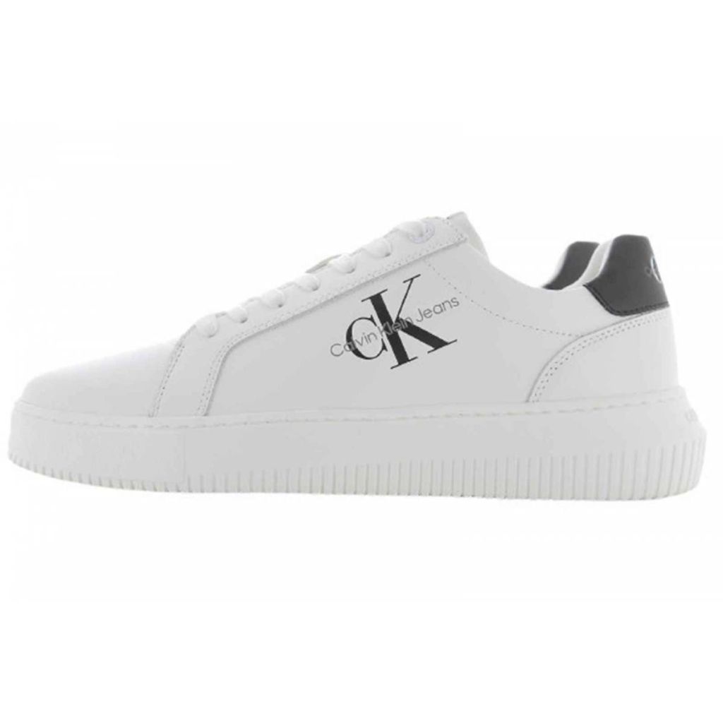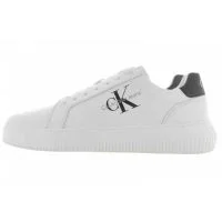 Scarpe Uomo Calvin Klein Chukky Cupsole Bianco/Nero in leather. Il fondo delle scarpe e' in Gomma mentre la tomaia e' in Pelle. Sulla Tomaia esterna si trova il Logo CK, un altro logo CK e' sulla linguetta e un altro logo CK e' sul tallone