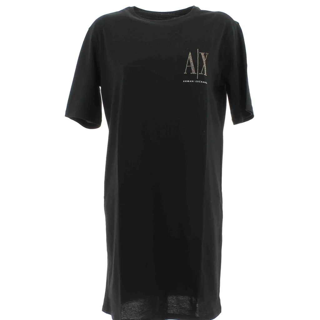 Abitino A|X Armani Exchange Logo A|X al Centro Dell'Abito Leggermente Elasticizzato Logo A|X Con Strass Maniche Corte Giro Collo Tinta Unita Donna 100% COTONE