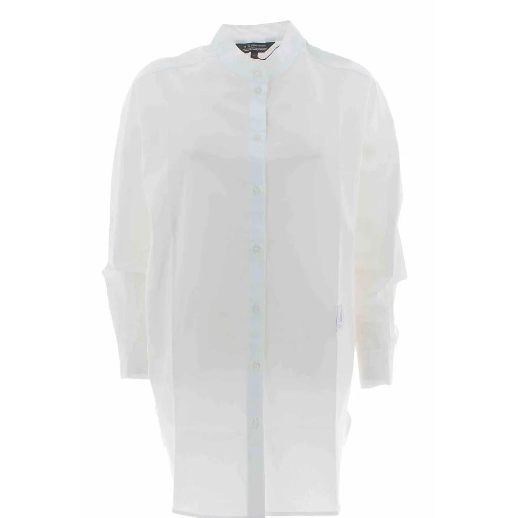 Camicione Manica Lunga A|X Armani Exchange Logo A|X Posto al Fondo del Camicione Fondo Della Camicia StondatoPolsini Con BottoneCollo Alla CoreanaTinta UnitaDonna 100% Cotone