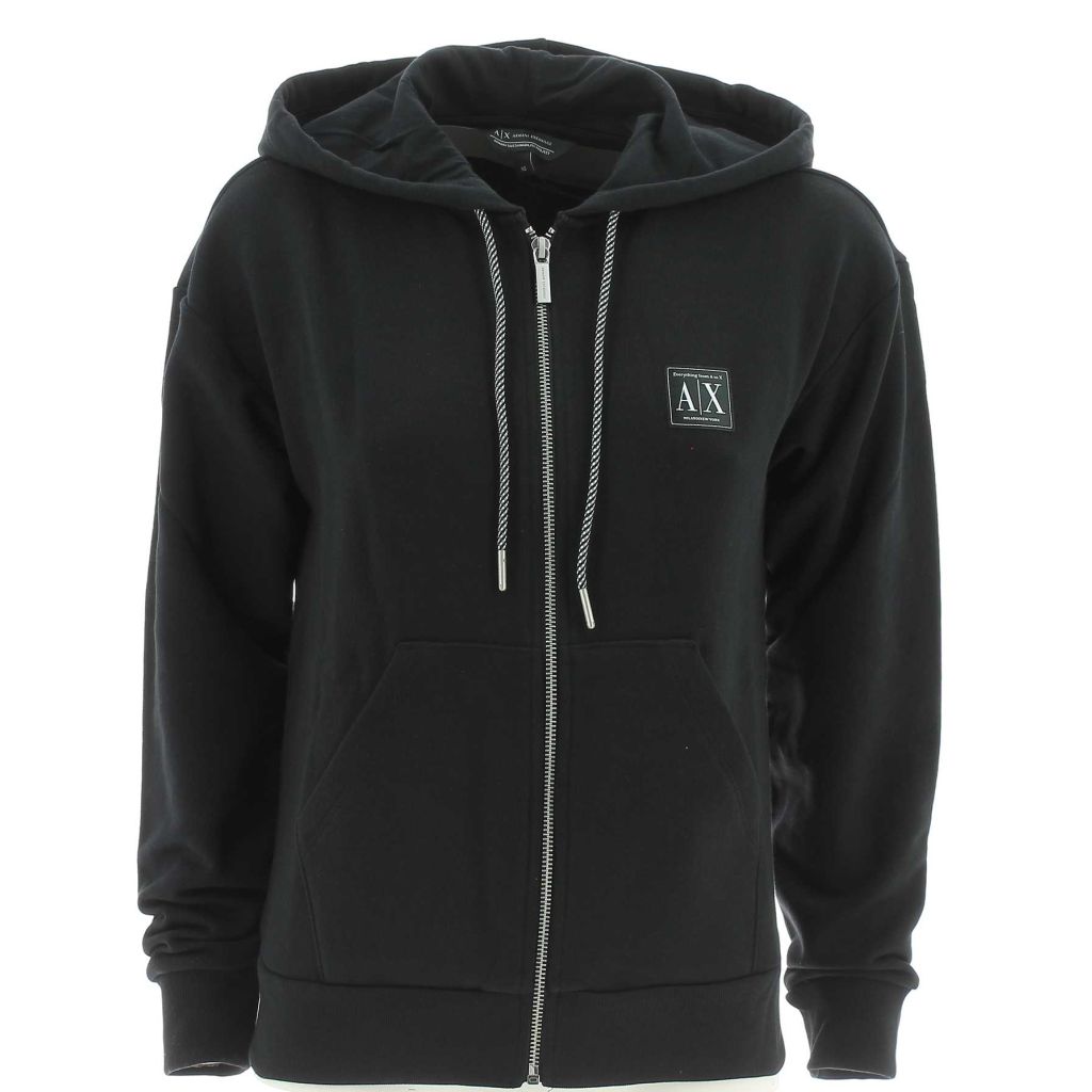 Felpa Leggera A|X Armani Exchange Cappuccio Full Zip Polsini Alla Fine Delle Maniche Elasticizzati Logo A|X Posto A Sinistra Della Felpa Fascione In Vita ElasticizzatoCappuccio Con TiralacciColore Nero Tinta Unita Donna 100% Cotone