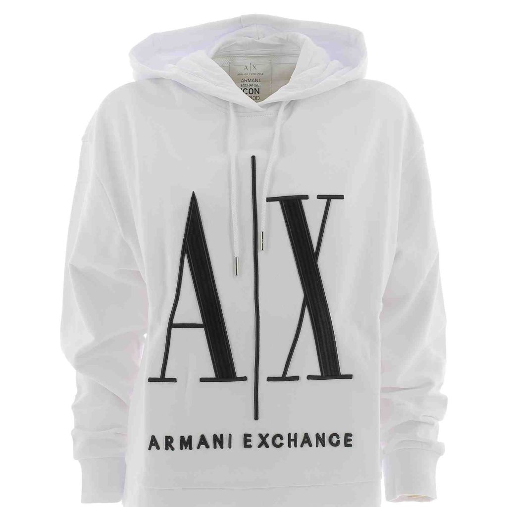 Felpa Garzata Cappuccio Chiiuso A|X Armani Exchange Polsini Alla Fine Delle Maniche Elasticizzati Logo A|X Nella Parte Centrale Ricamato Fascione In Vita Elasticizzato Linea: Icon Period Tinta Unita Donna 100% Cotone