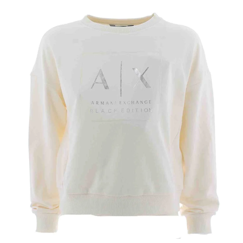Felpa Donna Garzata Giro Collo A|X Armani Exchange con Polsini alla Fine Delle Maniche Elasticizzati e Fascione in Vita Elasticizzato. Il Logo A|X e' posto nella Parte Centrale della Felpa con colore a contrasto. Il Tessoto e' al 70% in Cotone e 30% in Poliestere. La Felpa A|X della Black Edition e' in Tinta Unita