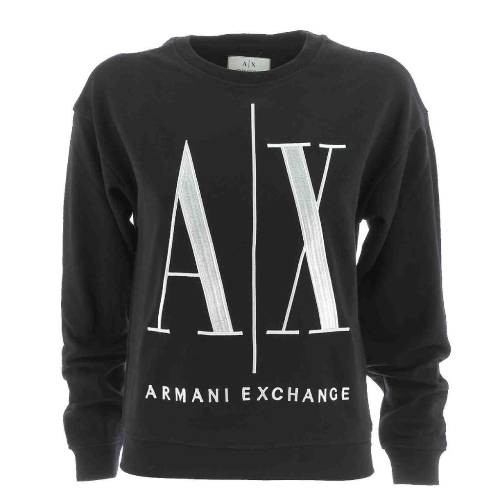Maglia Felpa Garzata Donna A|X Armani Exchange a Giro Collo. Polsini alla Fine delle Maniche Elasticizzati e Grande Logo A|X