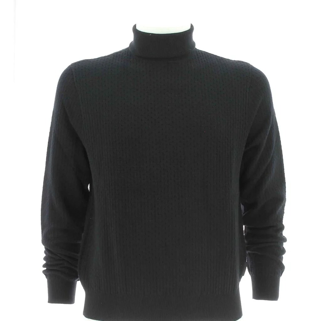 Maglia Cotone Uomo a Collo Alto Tinta Unita A|X Armani Exchange. Il Tessuto e' Composto dal 62% di Cotone e 38% di Viscosa, i Polsini alla Fine delle Maniche e il Fascione in Vita sono Elasticizzati. Il Colore e' Nero