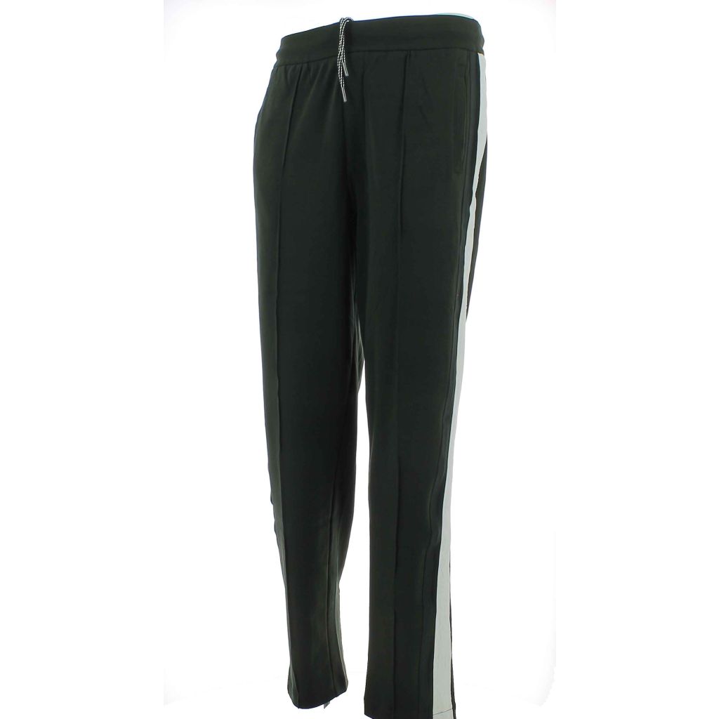 Pantalone in Felpa Garzata A|X Armani Exchange con Stripe Laterali Logate AX a contrasto di colore. Dispone di due tasche laterali, coulisse in vita regolabile con tiralacci e fascione elasticizzato. Il Fondo del Pantalone e' largo e nella parte posteriore sono presenti due tasche Il Tessuto e' al 100% di cotone in Tinta Unita