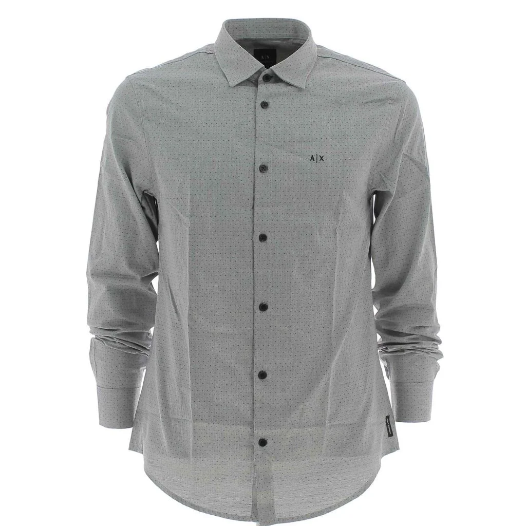Camicia Manica Lunga A|X Armani Exchange Fondo Della Camicia Stondato Polsini Con Doppio Bottone Vestibilita' Regular Piccolo Logo Uomo 100% Cotone