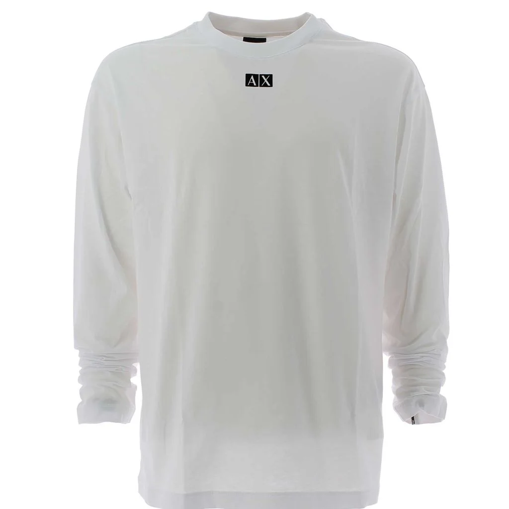T Shirt A|X Armani Exchange Tinta UnitaLogo A|X Posto Al Centro Della T Shirt Tape logato A|X Sulle Maniche Leggermente Elasticizzata Manica LungaGiro ColloUomo100% Cotone