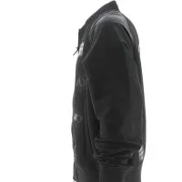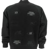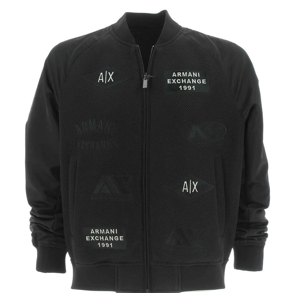 Giacca Bomber Nera Uomo A|X Armani Exchange con collo alla Coreana. Il tessuto e' a nido d'ape nella parte centrale e liscio sulle maniche. Nella parte centarle della Giacca fronte e retro sono presenti diversi loghi AX ricamati.La zip dispone di due cursori con apertura anche dalla parte bassa. Le due tasche laterali sono chiuse con bottone automatico e il tessuto e' al 100% in Poliamide.
