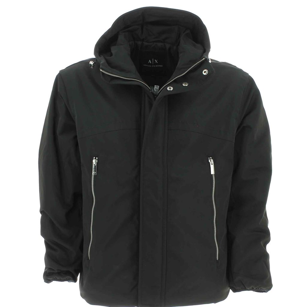 Giacca Uomo Armani Exchange Black Edition Line. La Giacca Dispone di Cappuccio con Tiralacci e Logo AX, Due Tasche Latreali con Zip