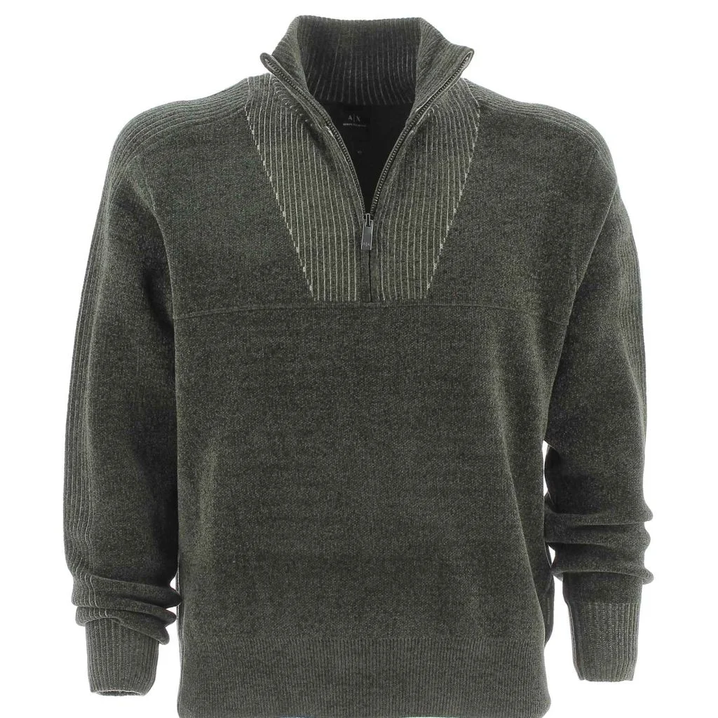 Pullover Armani Exchange Uomo Tinta Unita Mezza Zip, con Polsini e Fascione Leggermente Elasticizzati. La Lavorazione del Tessuto e'
