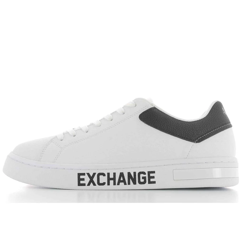Scarpe A|X Armani Exchange con Suola in Gomma e Tomaia in Pelle. La Scarpa e' di colore Bianco/Nero e dispone di Logo AX Armani Excghange sul Tallone, sulla Linguetta della Scarpa e sulla parte esterna della scarpa.