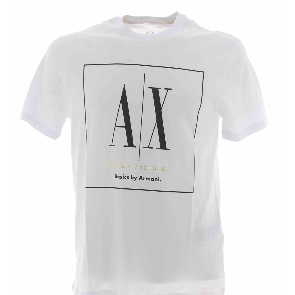 T Shirt Giro Collo A|X Armani Exchange Logo A|X Al Centro Della T Shirt Leggermente Elasticizzata Manica Corta Tinta Unita Giro Collo Uomo 100% Cotone