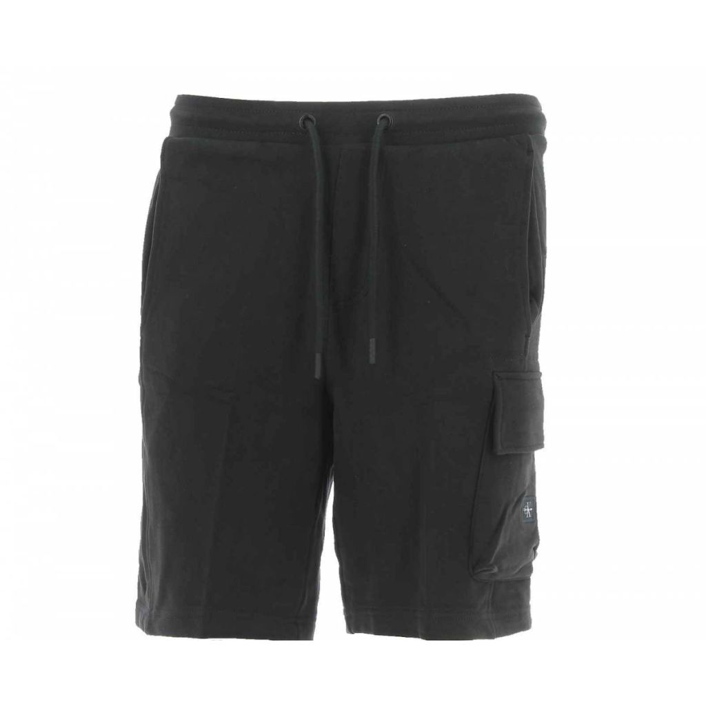 Bermuda Cargo Calvin Klein Uomo in Felpa Garzata Tinta Unita Nero, Coulisse in Vita con Tiralacci, due Tasche Laterali, una Tasca nella parte Posteriore e una Tasca sulla Gamba Sinistra con logo CK. Il Tessuto e' al 100% Cotone