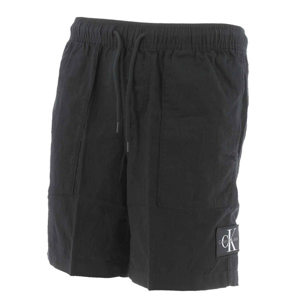 Bermuda Jersey Uomo Calvin Klein in Misto Lino a Tinta Unita colore Nero con una Tasca Nella Parte Posteriore e due Tasche Laterali. Il logo CK e' posto sulla gamba sinistra e Il bermuda dispone di fascione In vita elasticizzato con coulisse in vita regolabile. La composizione del tessuto del bermuda e' in 65% Cotone e 35% Lino.