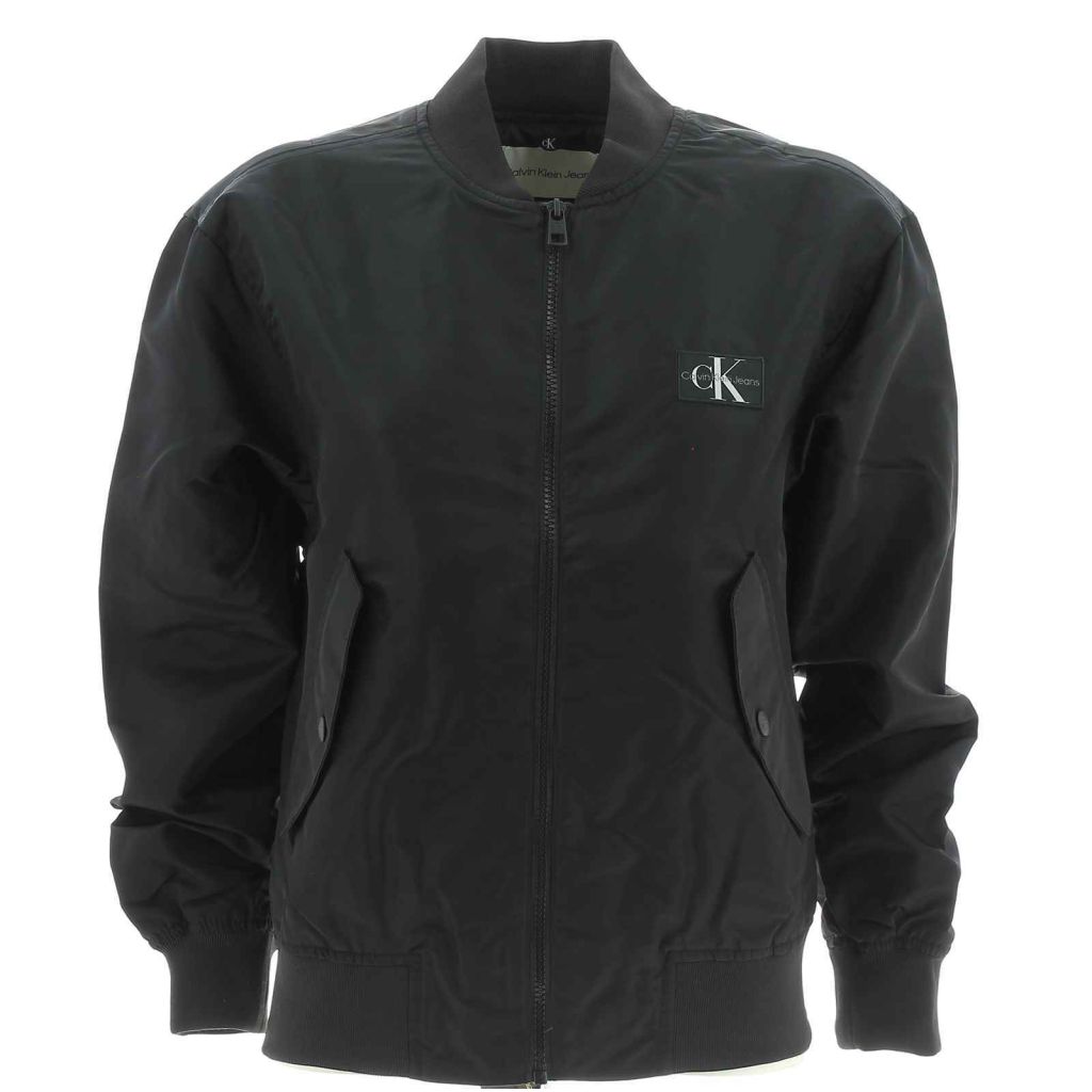 Giacca Bomber Full Zip Calvin Klein Polsini Sulle Maniche Elasticizzati Due Tasche Laterali Con Bottone Fascione In Vita Elasticizzato Logo CK Posto a Sinistra Apertura Full Zip Colore Nero Tinta Unita Donna Tessuto Esterno: 100% Poliammide