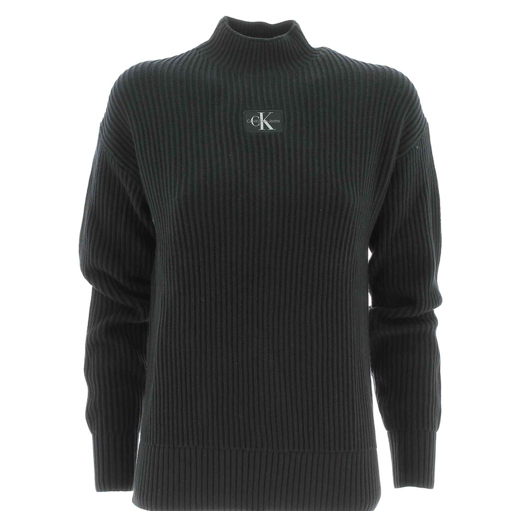 Maglia Cotone Donna con collo a lupetto Calvin Klein. Fascione in vita leggermente elasticizzato e il tessuto e' a costine. Il logo Calvin Klein e' posto al centro della maglia e i polsini delle maniche sono leggermente elasticizzati. La maglia e' a tinta unita e il tessuto e' al 100% in cotone.