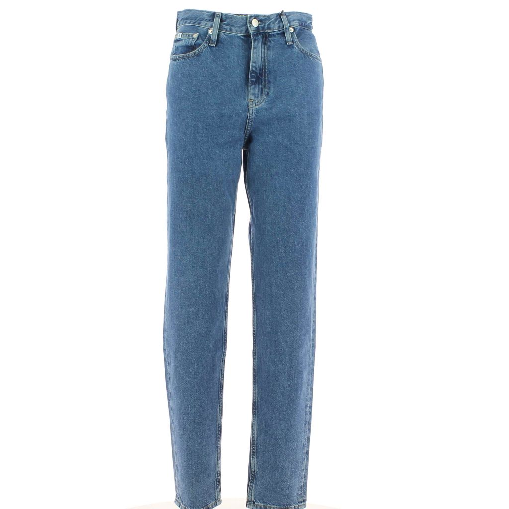 Pantalone Jeans Calvin Klein Leggermente Elasticizzato Due Tasche Posteriori Modello Mom Jeans Tre Tasche Laterali Donna 100% Cotone