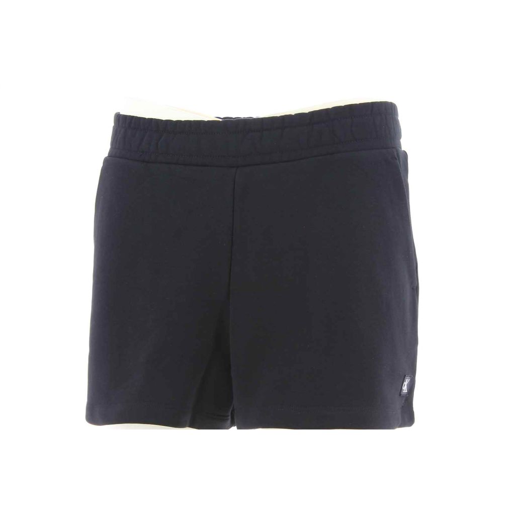 Questi shorts neri con logo bianco sul lato sono realizzati in felpa garzata Calvin Klein. Con un fascione elasticizzato in vita e il logo CK posizionato a sinistra, questi shorts sono perfetti per le donne. La tinta unita conferisce loro un aspetto elegante e il tessuto composto al 88% di cotone e al 12% di poliestere li rende comodi e resistenti.