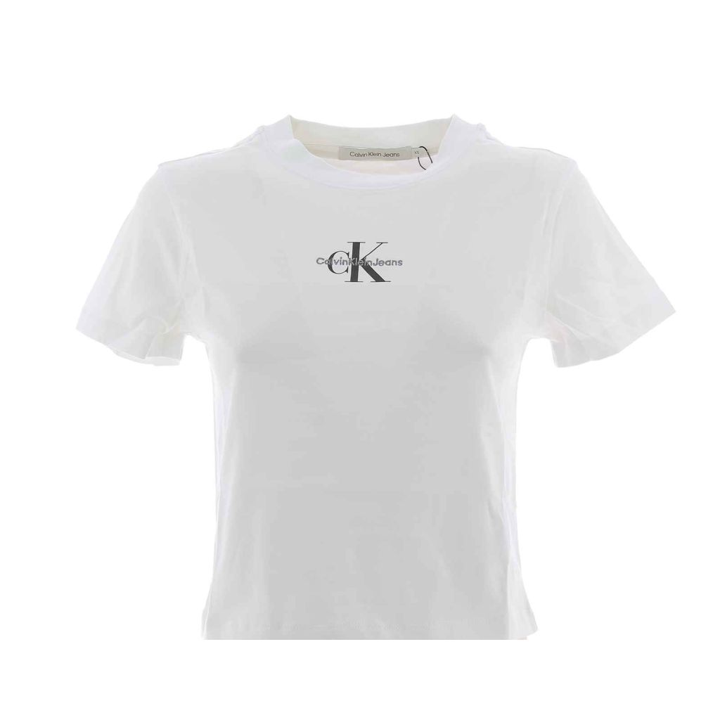 T Shirt Giro Collo Calvin Klein Tinta Unita Logo CK Posto a Sinistra Della T Shirt Leggermente Elasticizzata Modello: Crop Regular Manica Corta Giro Collo Donna 100% Cotone