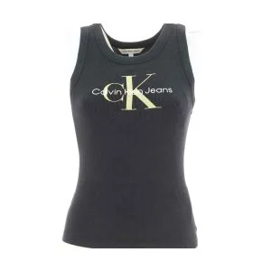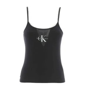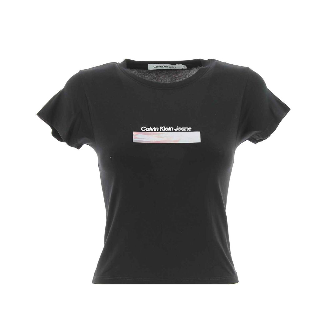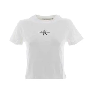 T Shirt Giro Collo Calvin Klein Jeans Tinta Unita Logo CK Posto al Centro Della T Shirt Leggermente Elasticizzata Modello : Crop Slim Fit Manica Corta Giro Collo Donna 95% Cotone, 5% Elastain