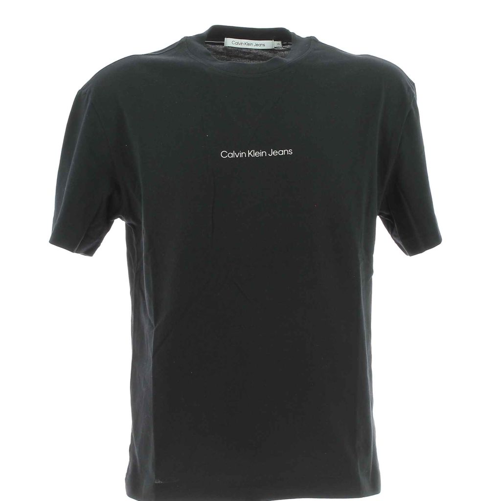 T Shirt Uomo Giro Collo Calvin Klein Manica Corta Tinta Unita Leggermente Elasticizzat. Nella Parte Posteriore e' Presente un Grande Stampa con Logo Calvin Klein.Logo CK Posto al Centro Della T Shirt. Il Tessuto della T shirt e' al 100% di Cotone