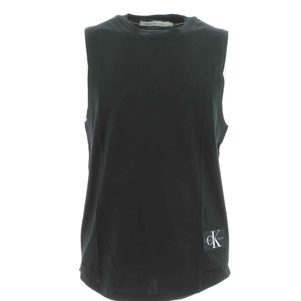 T Shirt uomo senza maniche a giro collo Calvin Klein. La t shirt ha il logo CK con patch ricamata posto sul fondo della T Shirt posto nella