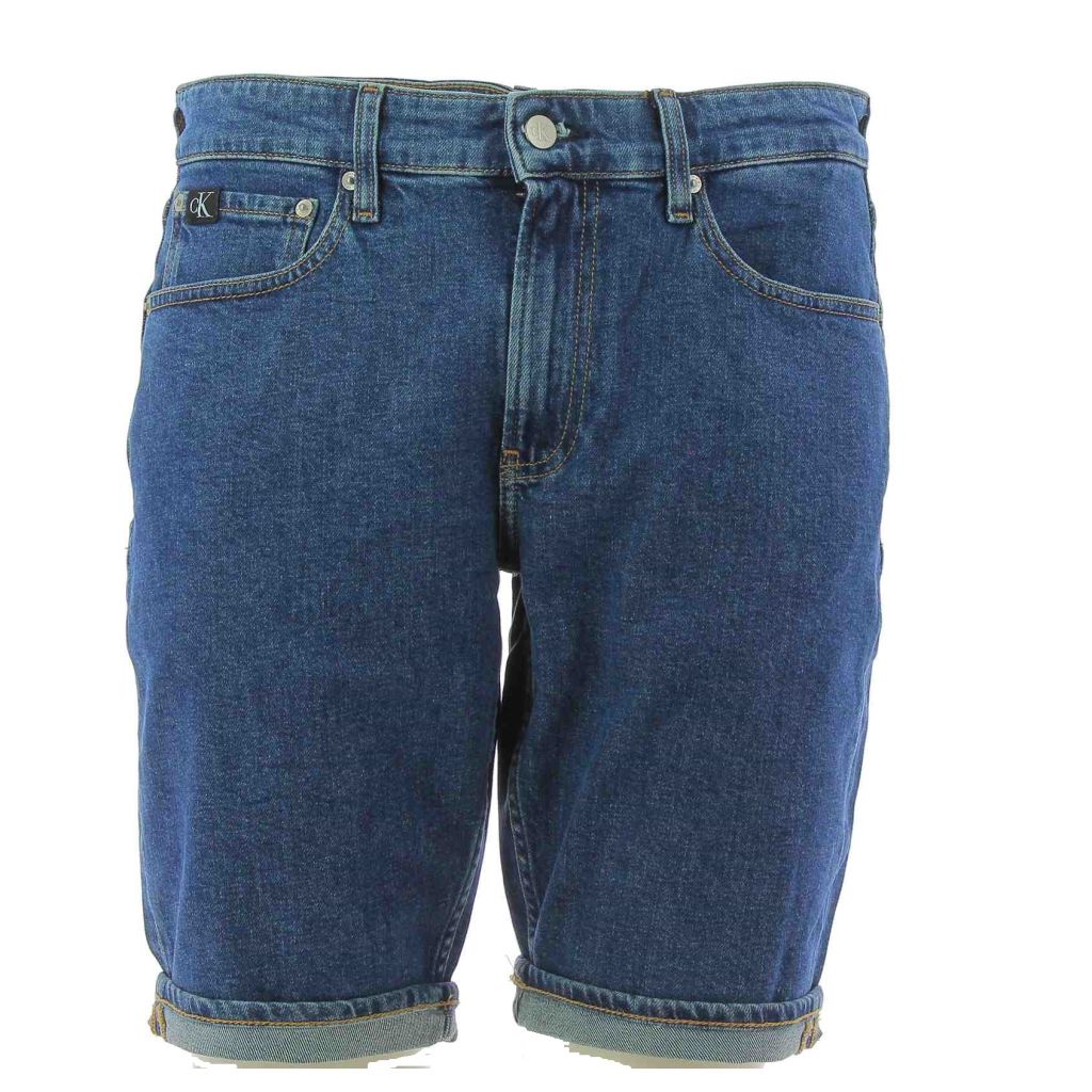 Bermuda In Jeans Calvin Klein Stone Wash Logo CK In Vita Nella Parte Posteriore Due Tasche Nella Parte Posteriore Tre Tasche Laterali Vestibilita' Regular Tinta Unita Uomo 99% Cotone, 1% Elastain