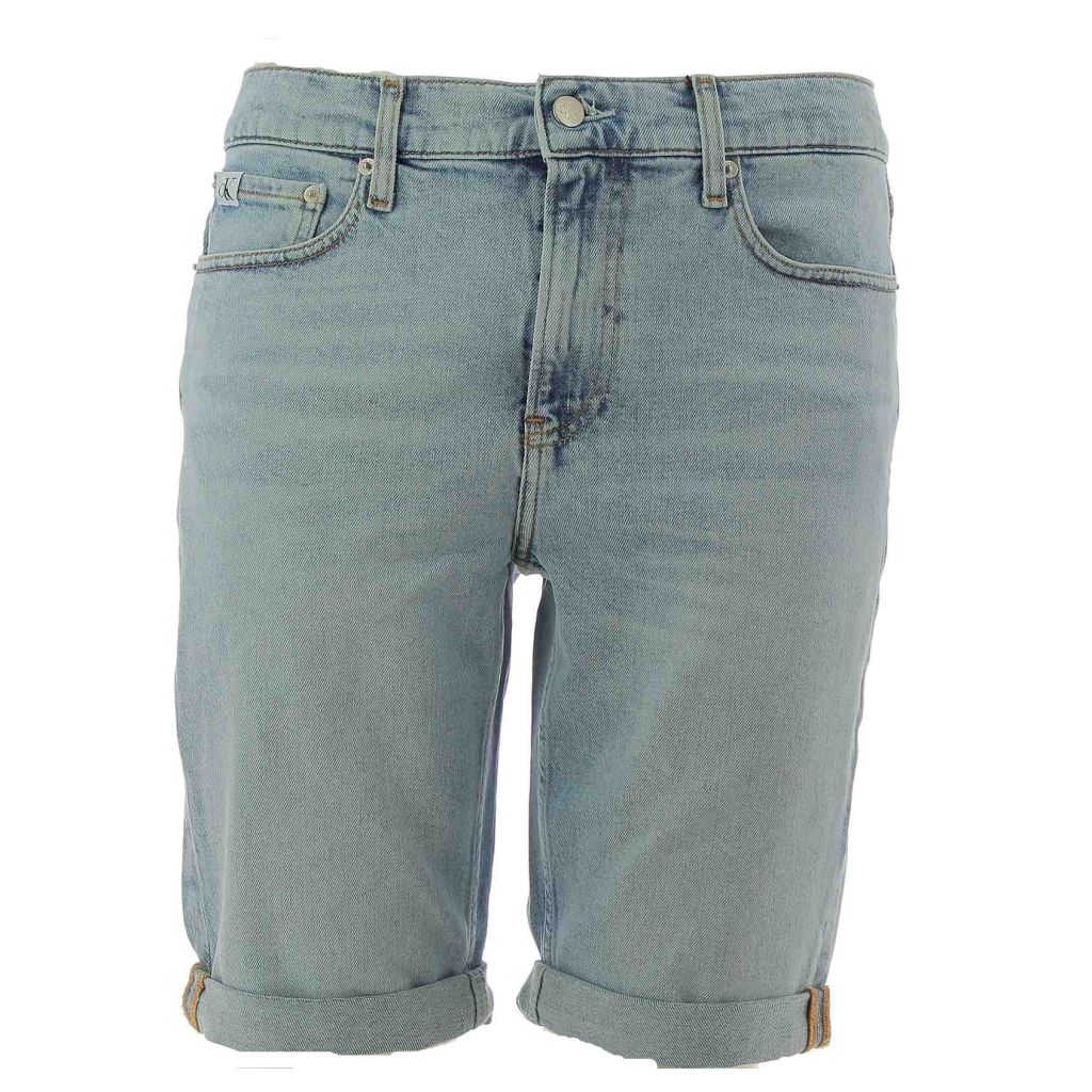 Bermuda In Jeans Calvin Klein Stone Wash Logo CK In Vita Nella Parte Posteriore Due Tasche Nella Parte Posteriore Vestibilita' Slim Short Tre Tasche Laterali Tinta Unita Uomo 99% Cotone, 1% Elastain