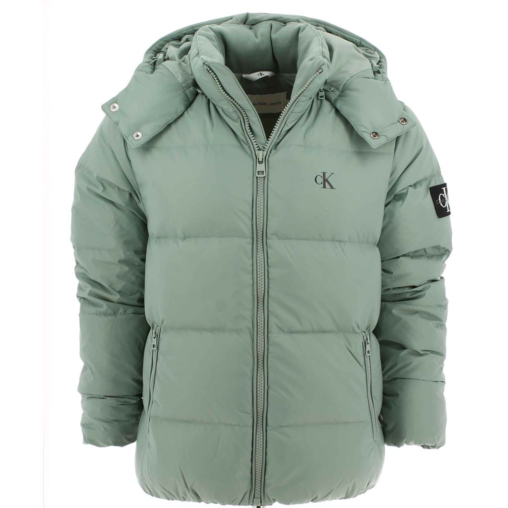 Giacca uomo con cappuccio staccabile in piuma Calvin Klein. La giacca dispone di apertura centrale con zip e due tasche laterali chiuse