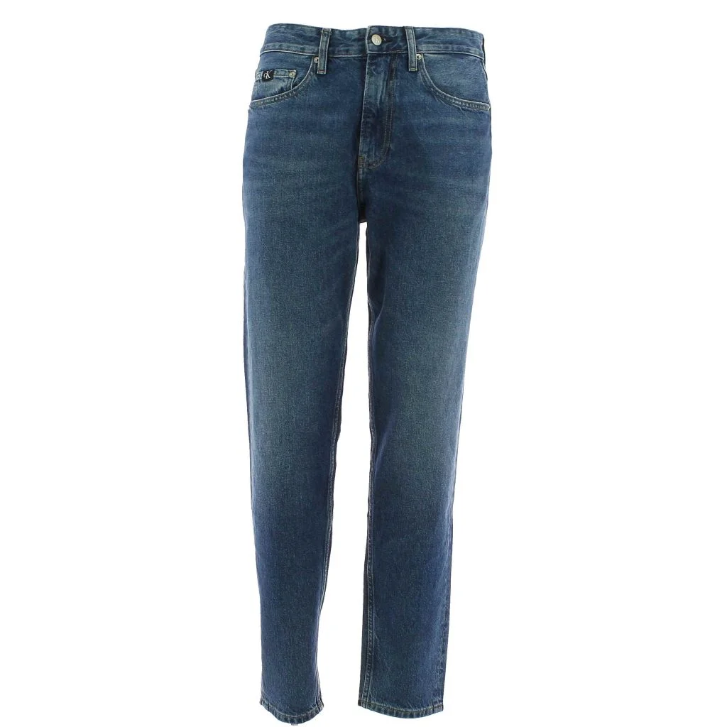 Pantalone Jeans Calvin Klein Regular Taper Leggermente Elasticizzato. Il Jeans dispone di tre tasche nella parte anteriore e due tasche nella parte posteriore La Vestibilita' e' Regular Taper e il Tessuto e' Blu Stone Wash al 100% Cotone. Sul Pantalone si Trovano 2 Loghi CK, uno nella parte anteriore sulla tasca e uno nella parte posteriore sul passacintura