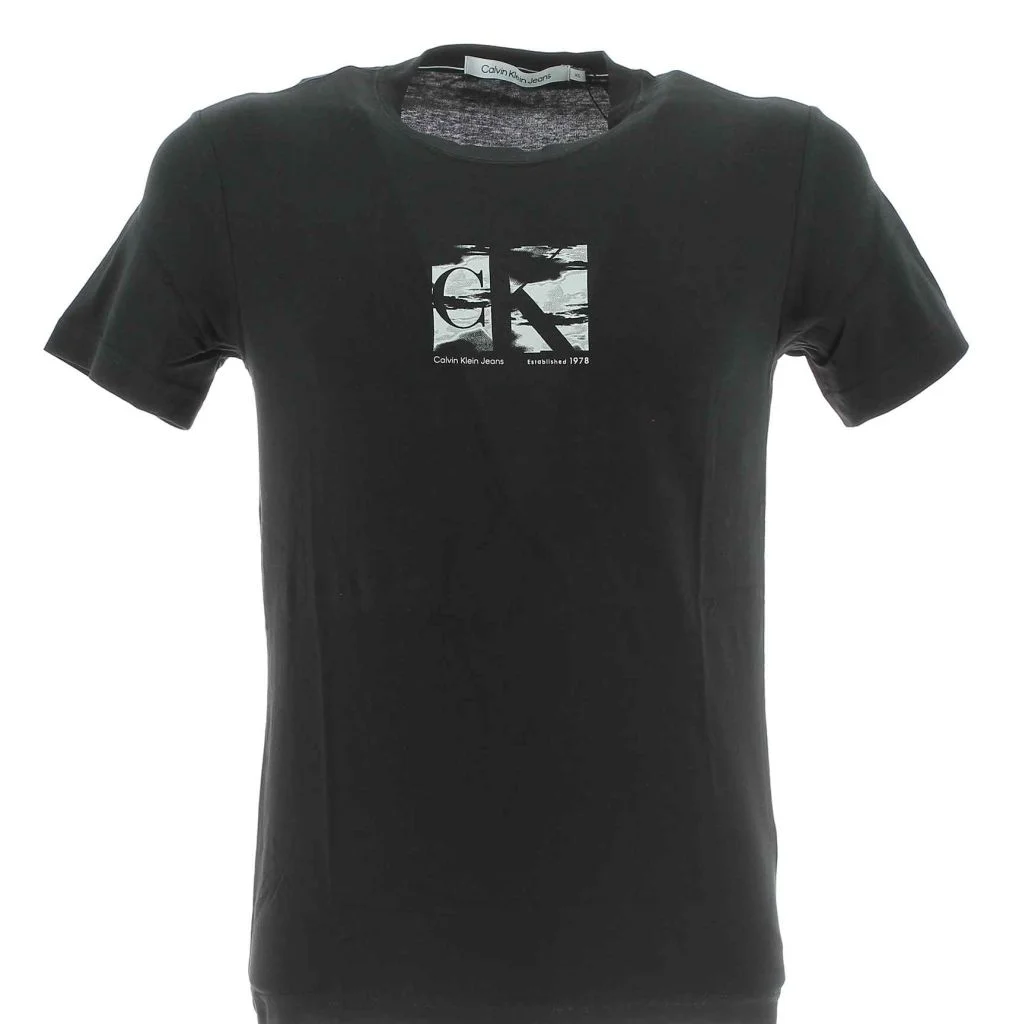 T Shirt Giro Collo Calvin Klein Tinta Unita Logo CK Posto al Centro Della T Shirt Leggermente Elasticizzata Manica Corta Giro Collo Uomo 100% Cotone