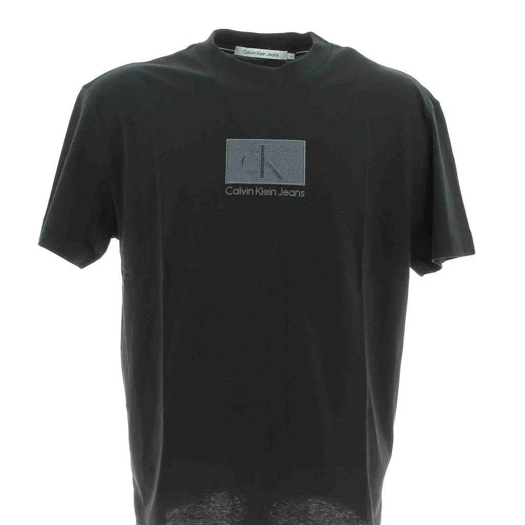 T Shirt Giro Collo Calvin Klein Tinta Unita Logo CK Posto Al Centro Della T Shirt Leggermente Elasticizzata Vestibilita': Over Manica Corta Giro Collo Uomo 100% Cotone