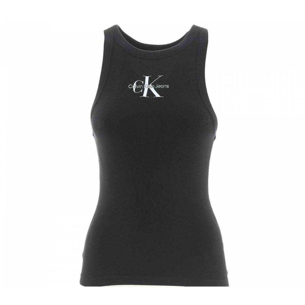 Canottiera Canettata Donna Calvin Klein, Tinta Unita con logo CK ricamato e stampato al centro della Canotta. Il tessuto e' Leggermente Elasticizzato a Lavorazione Cannete' ed e' Composto al 94% in Cotone e 6% Elastain.