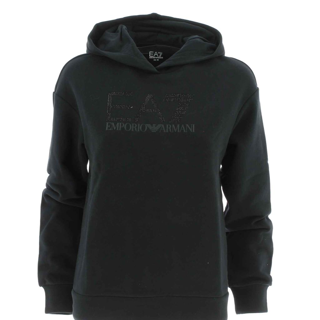 Felpa Garzata Cappuccio Chiuso EA7 Emporio ArmaniPolsini Alla Fine Delle Maniche ElasticizzatiGrande Logo EA7 Al Centro Della FelpaFascione In Vita ElasticizzatoTinta UnitaDonna 88% Cotone, 12% Poliestere