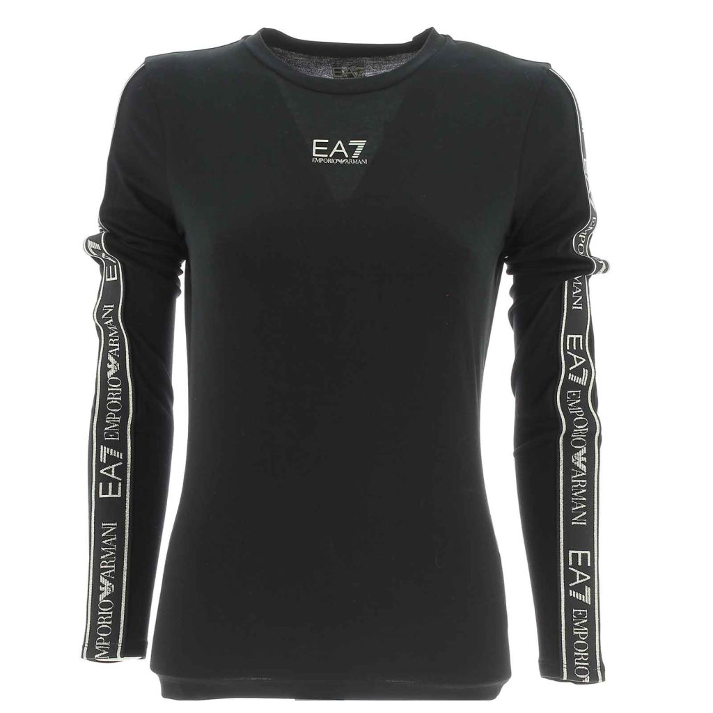 T Shirt EA7 Emporio Armani Tinta Unita Tape Logato EA7 Lungo Le ManicheLogo EA7 Al Centro Della T Shirt Leggermente ElasticizzataManica CortaGiro ColloDonna 62% Poliestere, 32% Viscosa, 6% Elastain