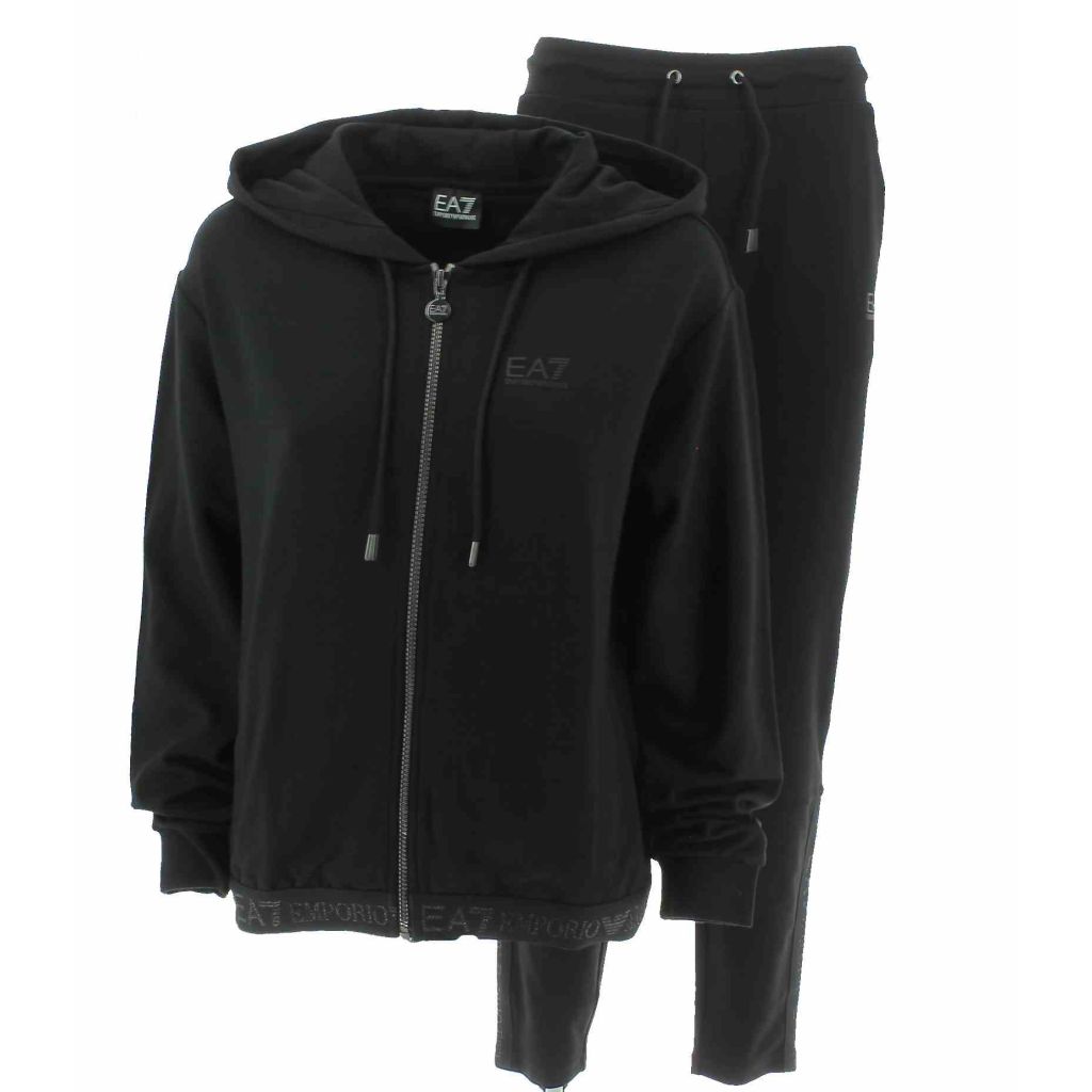 Tuta In Felpa Garzata Full Zip Cappuccio EA7 Emporio Armani Donna Tinta Unita