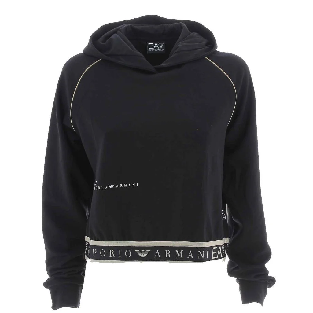 Felpa Crop Garzata Natural Ventus con Cappuccio Chiuso EA7 Emporio Armani Donna. La Felpa dispone di fascione in vita logato EA7. I Polsini alla fine delle maniche e il fascione in vita sono elasticizzati. Il Tessuto e' 50% Poliestere, 24% Cotone, 23% Modal e 3% Elastain