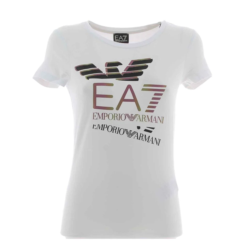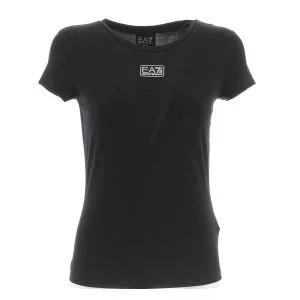 T Shirt EA7 Emporio Armani Tinta Unita Logo EA7 Al Centro Della T Shirt Leggermente Elasticizzata Manica Corta Giro Collo Donna 95% Cotone, 5% Elastain
