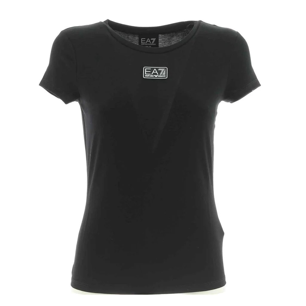 T Shirt EA7 Emporio Armani Tinta Unita Donna Tape Logato EA7 Nella Parte Posteriore Logo EA7 Al Centro Della T Shirt Leggermente Elasticizzata Linea: Natural Ventus Manica Corta Giro Collo 62% Poliestere, 33% Viscosa, 8% Elastain