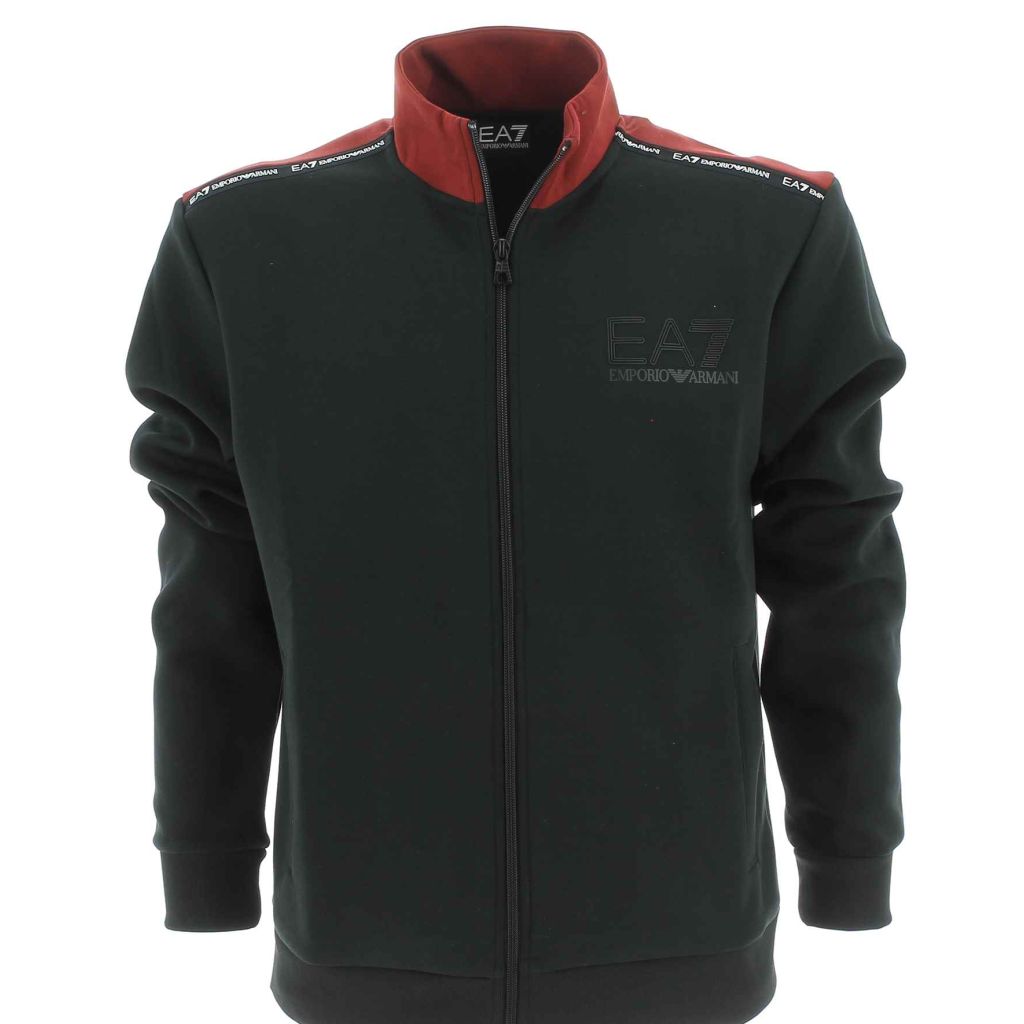 Felpa Uomo Garzata Full Zip EA7 Emporio Armani, con Tape Logato EA7 sulle Spalle, due Tasche Laterali e logo EA7 Posto a Sinistra.