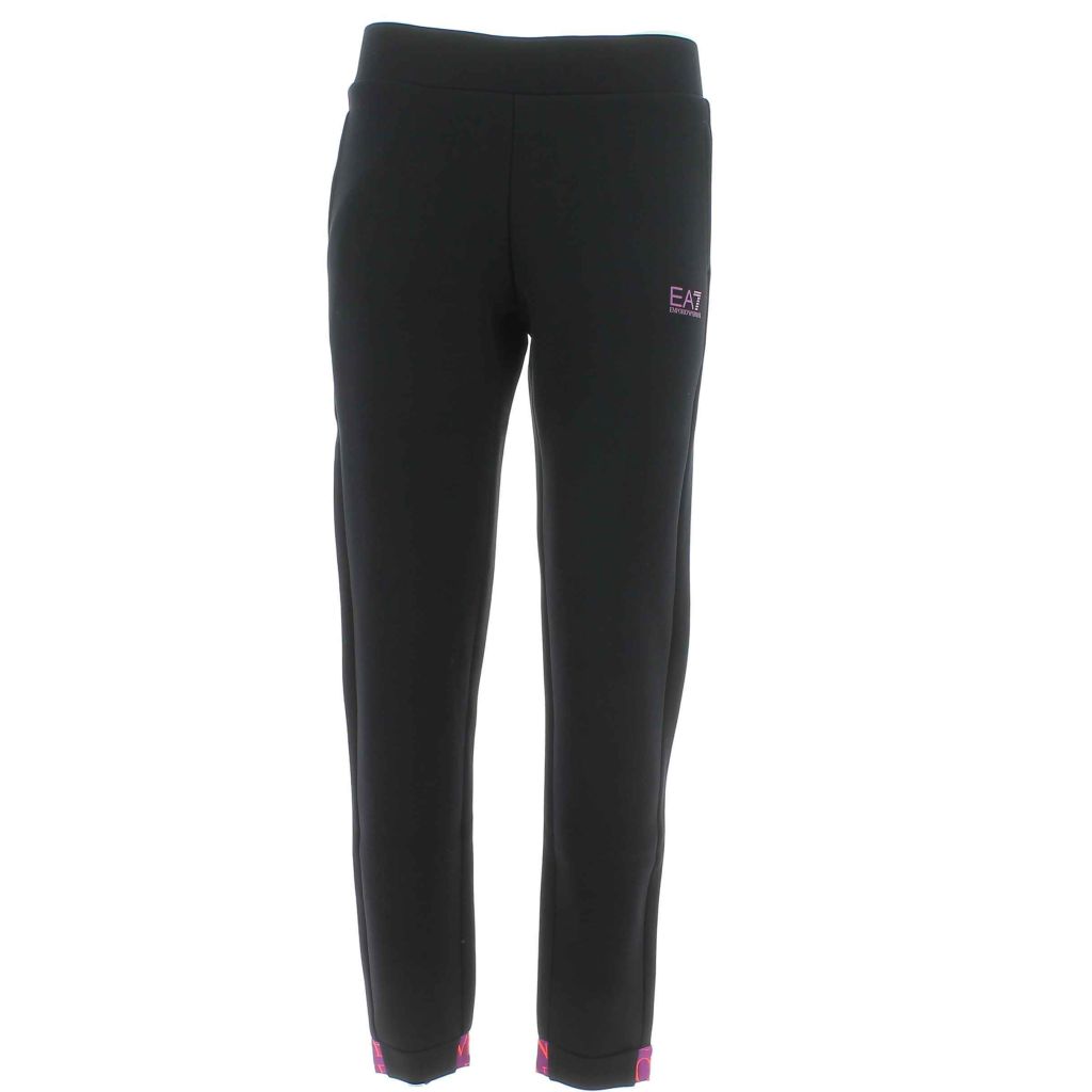 Pantalone in Felpa Garzata EA7 Emporio Armani con Fascione in Vita Elasticizzato, Due Tasche Laterali e Polsini al Fondo del Pantalone in Contrasto di Colore.Il Tessuto e' 53% Cotone e 47% Poliestere