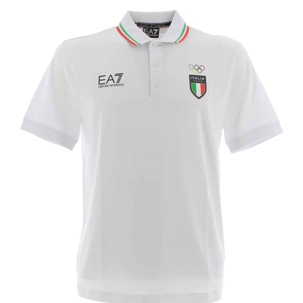 Polo manica corta Uomo con colletto tre bottoni EA7 Emporio Armani Olimpiadi 2024, leggermente elasticizzata. Logata Italia nella parte