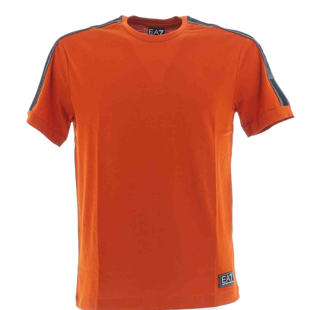 T shirt Manica Corta Tinta Unita EA7 Emporio Armani Girocollo con Tape sulle spalle logato EA7 a Contrasto di Colore. La T shirt dispone anche di Logo EA7 sul fondo. Il Tesuto e' al 100% Cotone e la vestibilita' e' Regular