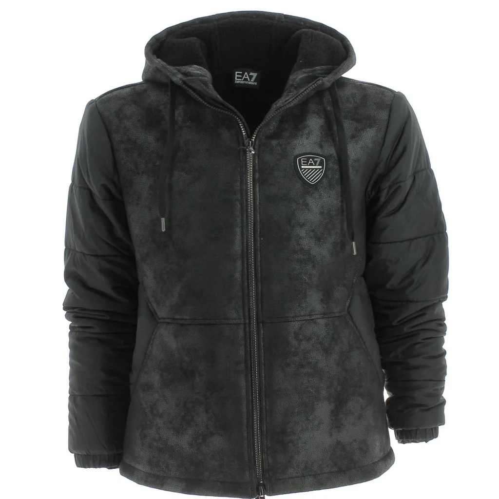 Giacca EA7 Emporio Armani In Ecomontone Uomo Due Tasche Laterali Con Bottone Automatico Corpo In Ecomontone Maniche In Nylon Apertura Full Zip Con Doppio Cursore Logo in Rilievo EA7 Posto a Sinistra Polsini Sulle Maniche Elasticizzati Colore Nero 100% Poliestere