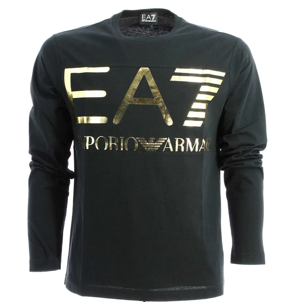 T Shirt EA7 Emporio Armani Tinta UnitaLogo EA7 Al Centro Della T ShirtLeggermente ElasticizzataManica LungaGiro ColloUomo100% Cotone