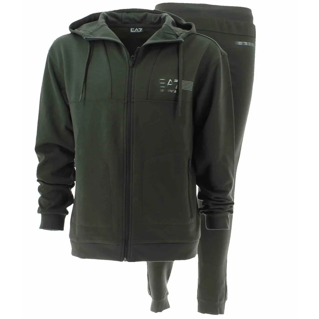 Tuta Felpa Garzata Full Zip Cappuccio EA7 Emporio Armani Uomo Tinta Unita
