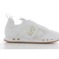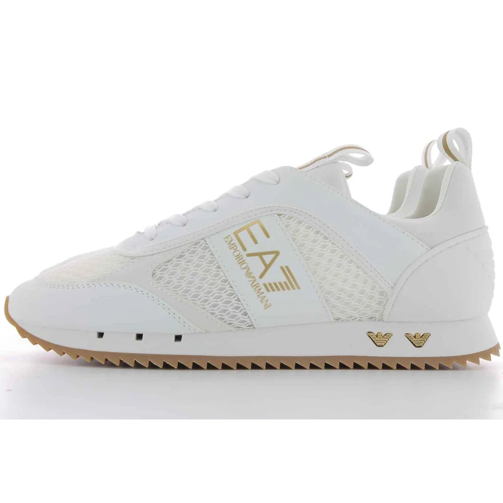 Sneakers Running EA7 Emporio Armani Logo GA Sulla Suola Della Scarpa Colore Bianco/Oro/Ecru Logo GA Sul Tallone Logo EA7 Sul Lato Uomo Tomaia Nylon Mesch Suola Gomma