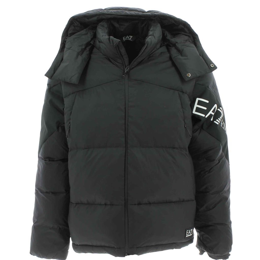 Giacca in Piuma Con Cappuccio Staccabile EA7 Emporio Armani Tinta Unita Nera. La Giacca Dispone di Due Tasche Laterali con Zip, Apertura Centrale con Doppio Cursore e Logo EA7 Posto Sulla Manica Sinistra . Il Cappuccio e' Staccabile con Cerniera a Scomparsa. All'interno della Giacca e' Presenta una Tasca con Zip. Il Tessuto Esterno e' al 100% Poliamide mentre l'Imbottitura della Giacca e' al 100% in Piuma D'Anatra