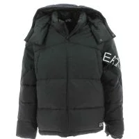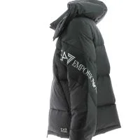Giacca in Piuma Con Cappuccio Staccabile EA7 Emporio Armani Tinta Unita Nera. La Giacca Dispone di Due Tasche Laterali con Zip,