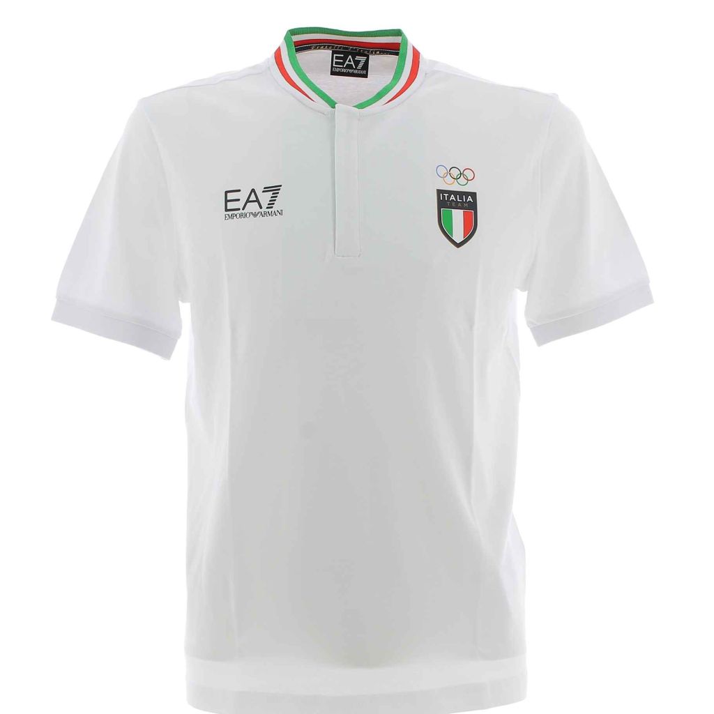 Polo Jersey Uomo con zip senza colletto EA7 Emporio Armani Olimpiadi 2024. I colori della bandiera Italiana sono presenti intorno al